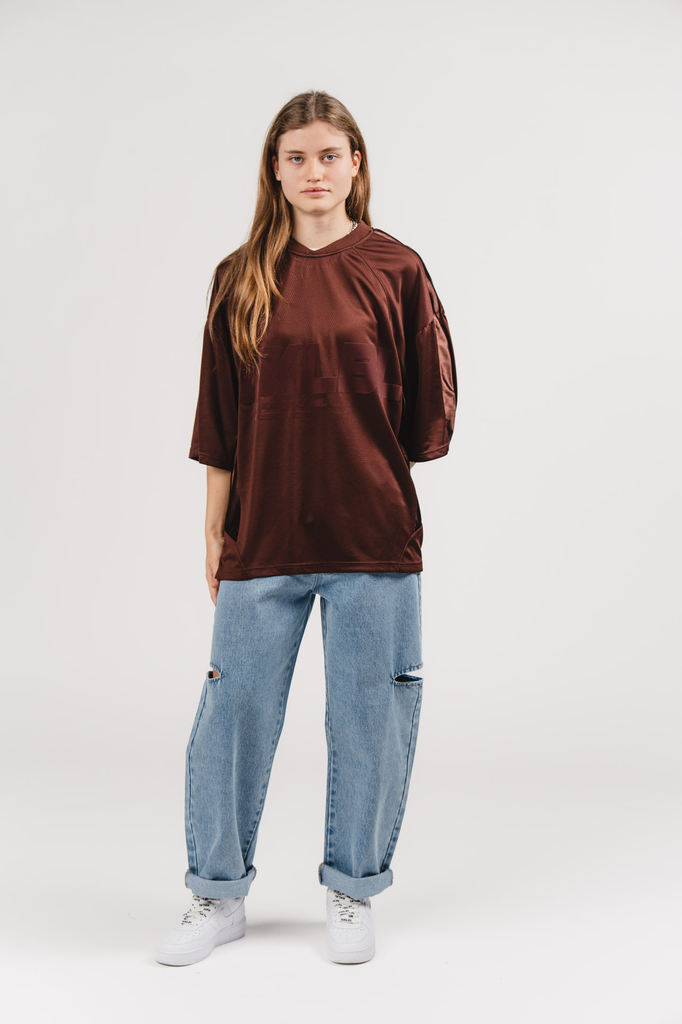 Ein vielseitiges Jersey T-Shirt in warmem Brown – perfekt für lässige Looks mit besonderem Twist.